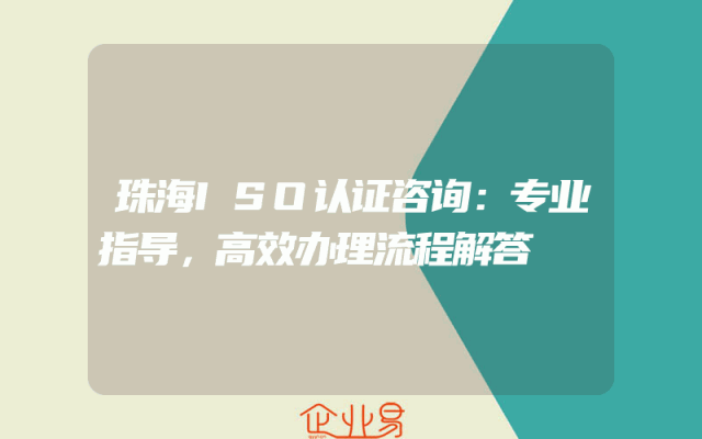 - 珠海ISO认证咨询:专业指导,高效办理流程解答