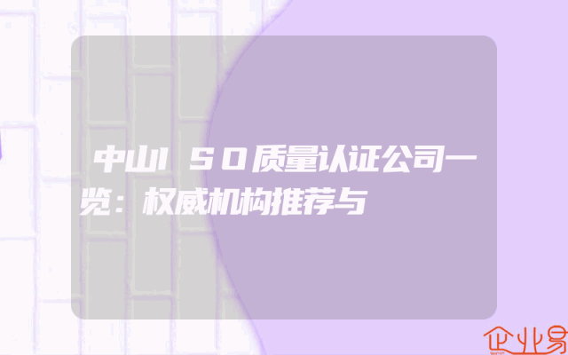 - 中山ISO质量认证公司一览:权威机构推荐与