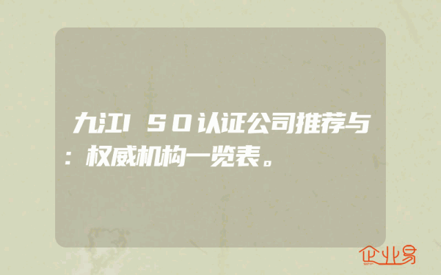 - 九江ISO认证公司推荐与:权威机构一览表。