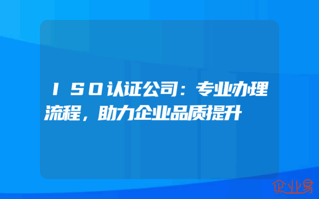 - ISO认证公司:专业办理流程,助力企业品质提升