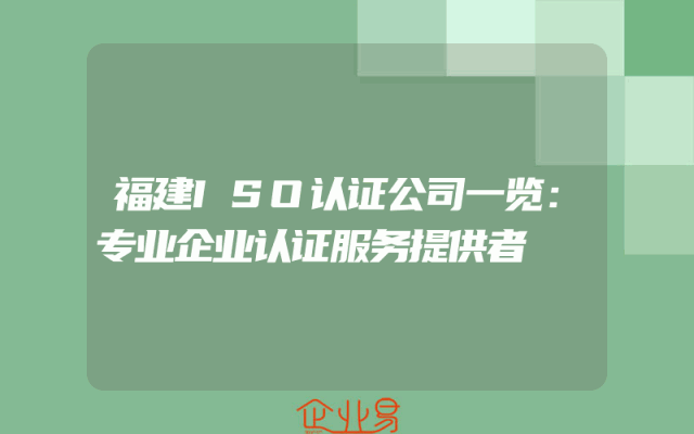 - 福建ISO认证公司一览:专业企业认证服务提供者