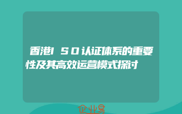 - 香港ISO认证体系的重要性及其高效运营模式探讨