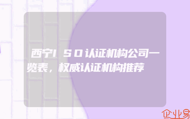 - 西宁ISO认证机构公司一览表,权威认证机构推荐