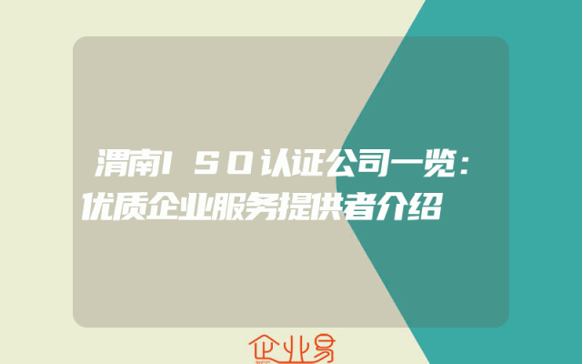 - 渭南ISO认证公司一览:优质企业服务提供者介绍