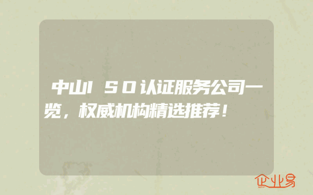 - 中山ISO认证服务公司一览,权威机构精选推荐!