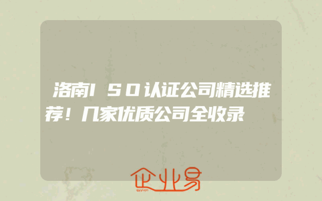 - 洛南ISO认证公司精选推荐!几家优质公司全收录