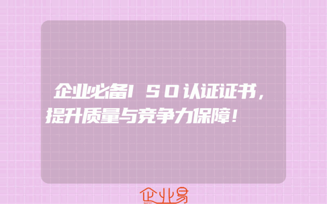 - 企业必备ISO认证证书,提升质量与竞争力保障!