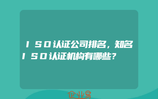 - ISO认证公司排名,知名ISO认证机构有哪些?
