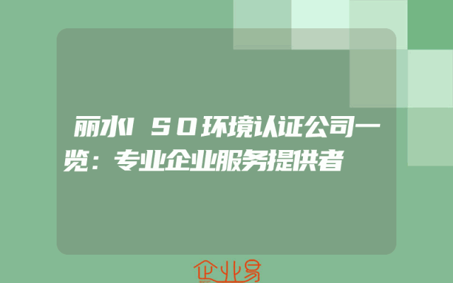 - 丽水ISO环境认证公司一览:专业企业服务提供者