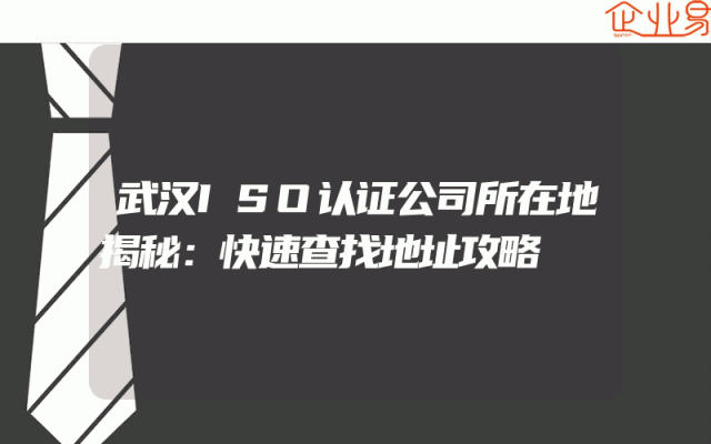 - 武汉ISO认证公司所在地揭秘:快速查找地址攻略