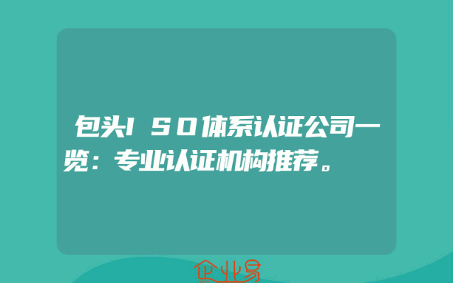 - 包头ISO体系认证公司一览:专业认证机构推荐。