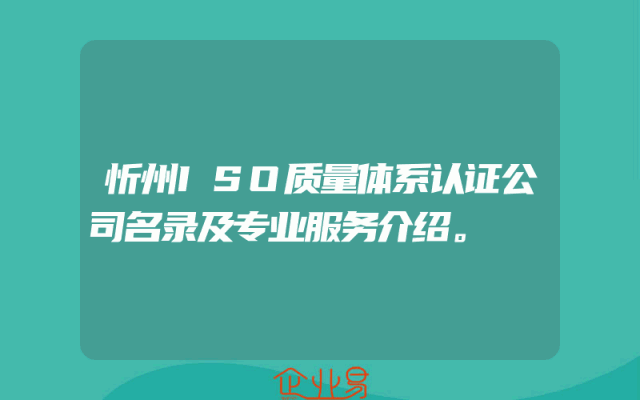 - 忻州ISO质量体系认证公司名录及专业服务介绍。