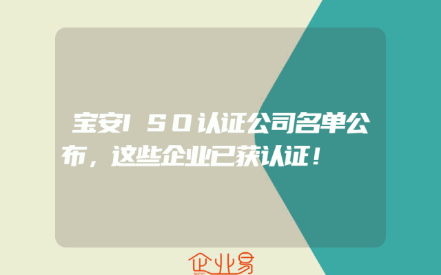 - 宝安ISO认证公司名单公布,这些企业已获认证!