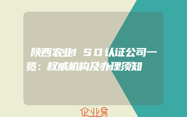 - 陕西农业ISO认证公司一览:权威机构及办理须知