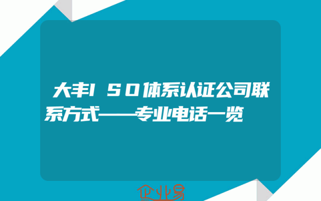 - 大丰ISO体系认证公司联系方式——专业电话一览