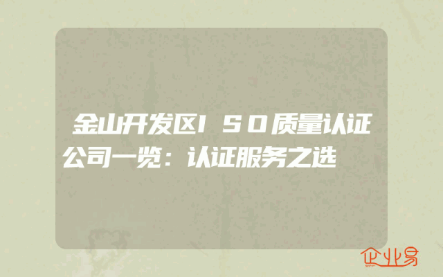 - 金山开发区ISO质量认证公司一览:认证服务之选
