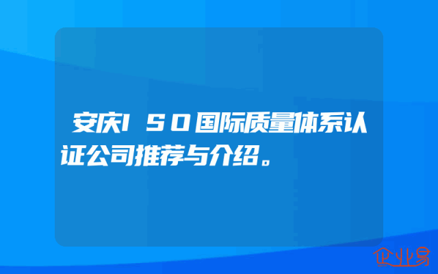- 安庆ISO国际质量体系认证公司推荐与介绍。