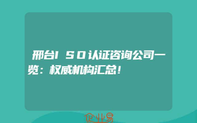 - 邢台ISO认证咨询公司一览:权威机构汇总!