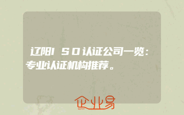 - 辽阳ISO认证公司一览:专业认证机构推荐。