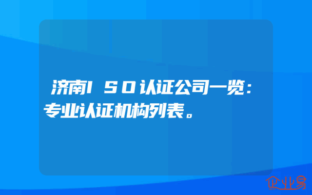 - 济南ISO认证公司一览:专业认证机构列表。