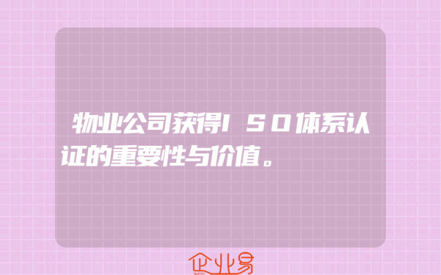 - 物业公司获得ISO体系认证的重要性与价值。