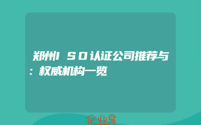 - 郑州ISO认证公司推荐与:权威机构一览