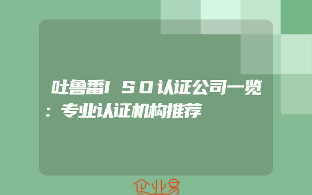 - 吐鲁番ISO认证公司一览:专业认证机构推荐