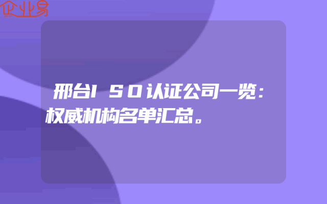 - 邢台ISO认证公司一览:权威机构名单汇总。