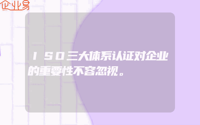 - ISO三大体系认证对企业的重要性不容忽视。