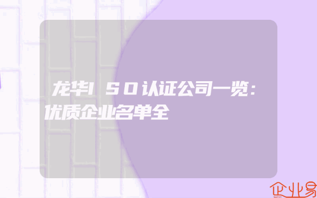 - 龙华ISO认证公司一览:优质企业名单全