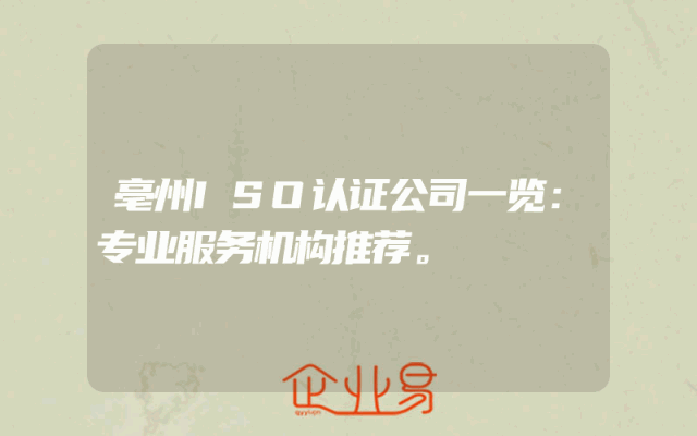 - 亳州ISO认证公司一览:专业服务机构推荐。