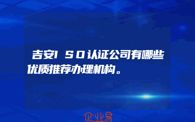 - 吉安ISO认证公司有哪些优质推荐办理机构。