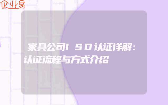 - 家具公司ISO认证详解:认证流程与方式介绍