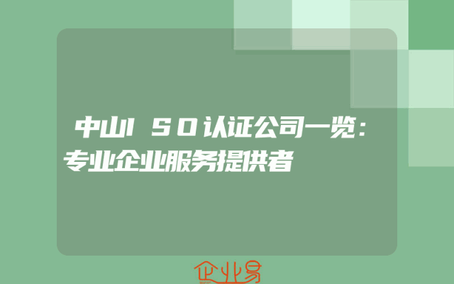 - 中山ISO认证公司一览:专业企业服务提供者一、引言随着市场竞争的日益激烈,企业对提高自身管理水平和服务质量的要求越来越高。在这样一个背景下,中山ISO认证公司作为专业的企业服务提供者,致力于为企业提供全方位的ISO认证咨询和解决方案,帮助企