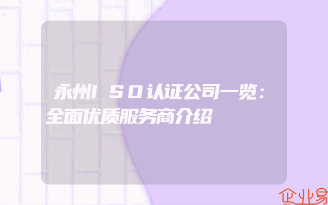 - 永州ISO认证公司一览:全面优质服务商介绍