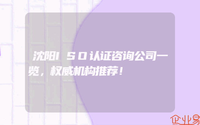 - 沈阳ISO认证咨询公司一览,权威机构推荐!