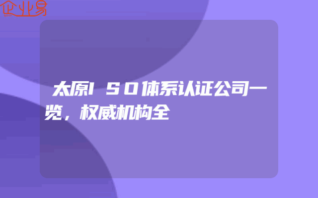 - 太原ISO体系认证公司一览——权威机构全解析一、太原ISO体系认证公司的概述随着经济全球化的发展,企业对质量管理体系的要求越来越高。在太原,众多企业为了提升竞争力,纷纷寻求权威的ISO体系认证。太原的ISO体系认证公司应运而生,为本地企业提
