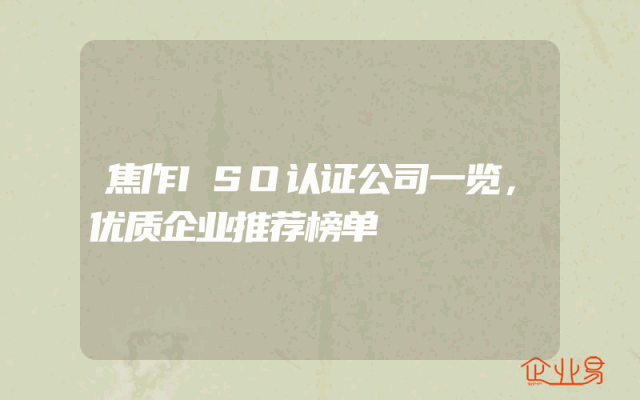 - 焦作ISO认证公司一览,优质企业推荐榜单