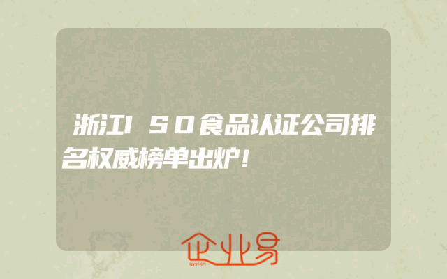 - 浙江ISO食品认证公司排名权威榜单出炉!