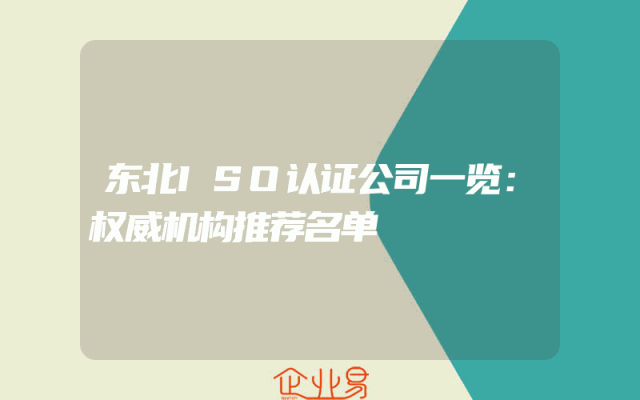 - 东北ISO认证公司一览:权威机构推荐名单ISO认证在东北地区的重要性随着全球经济一体化的加速,ISO认证已成为企业走向国际市场的“通行证”。在东北地区,众多企业为提升自身管理水平和产品质量,纷纷寻求权威