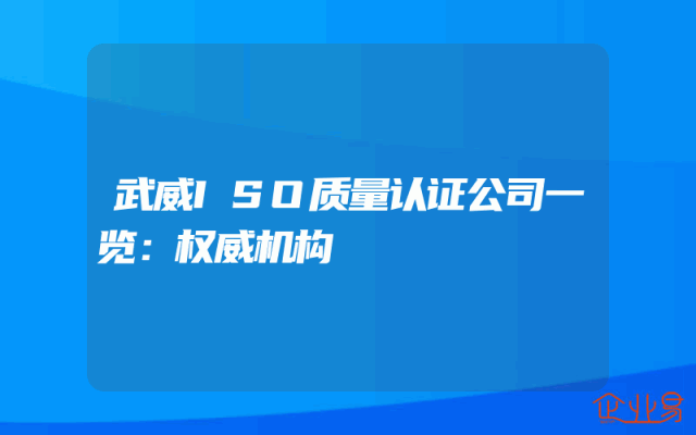 - 武威ISO质量认证公司一览:权威机构解析一、武威ISO质量认证概述武威市作为甘肃省的重要城市之一,其企业在质量管理上的需求日益旺盛。为了满足这一需求,武威市的ISO质量认证服务机构应运而生,它们为企业提供全方位的ISO质量管理体系认证服务,