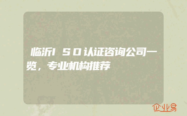 - 临沂ISO认证咨询公司一览,专业机构推荐