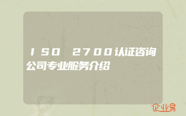 - ISO2700认证咨询公司专业服务介绍一、引言在当今竞争激烈的市场环境下,企业的信息安全已成为重中之重。为了确保企业信息安全管理的有效性,越来越多的企业选择寻求ISO2700认证咨询公司的专业服务。ISO2700认证是衡量企业信息安全管理体