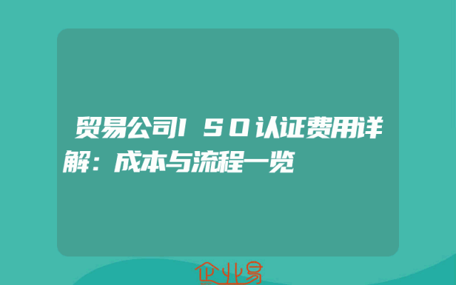 - 贸易公司ISO认证费用详解:成本与流程一览