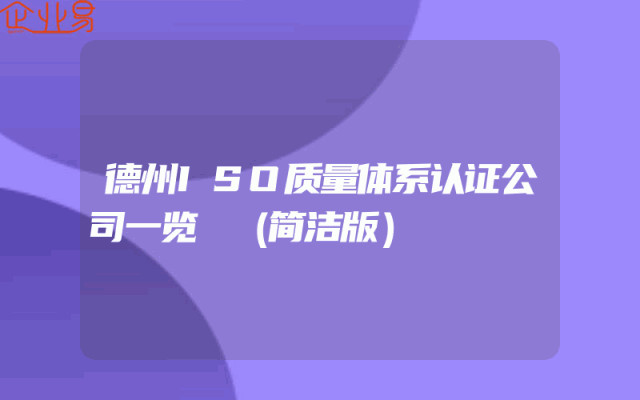 - 德州ISO质量体系认证公司一览 (简洁版)