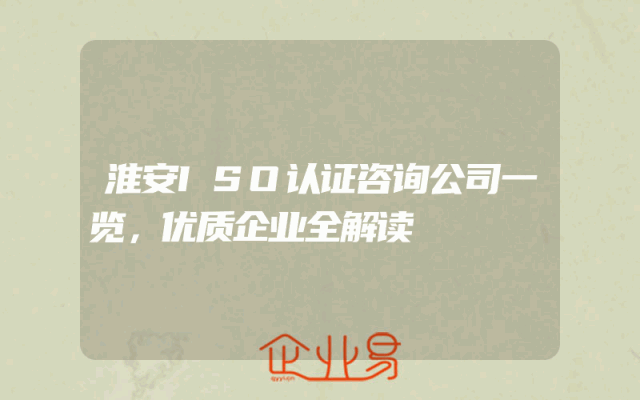 - 淮安ISO认证咨询公司一览,优质企业全解读