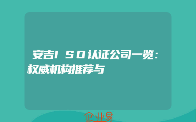 - 安吉ISO认证公司一览:权威机构推荐与