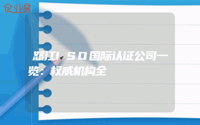 - 怒江ISO国际认证公司一览:权威机构全