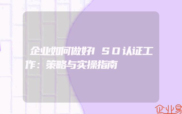 - 企业如何做好ISO认证工作:策略与实操指南