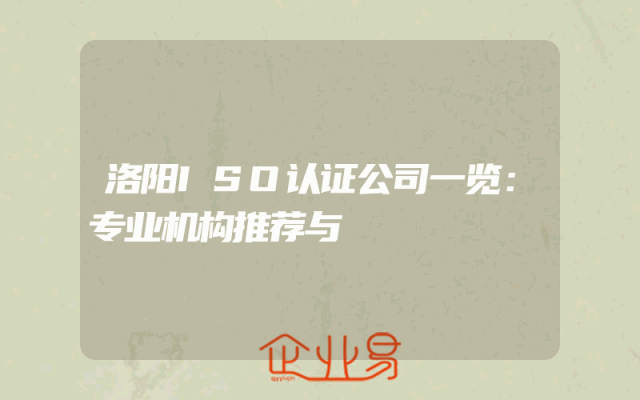 - 洛阳ISO认证公司一览:专业机构推荐与